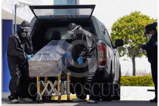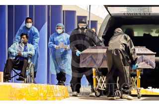 PUEBLA, PUEBLA, 16AGOSTO2021.- Paciente con Covid-19 ingresa a Urgencias del Hospital General Cholula, mientras personal de agencia funeraria realiza el traslado de un cadáver. FOTO: MIREYA NOVO/CUARTOSCURO.COM