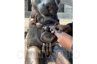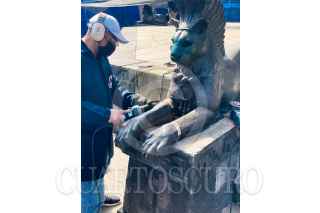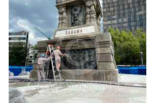 CIUDAD DE MÉXICO, 16AGOSTO2021.- Con una ceremonia efectuada el pasado 13 de agosto, día en que se evocó la captura, hace 500 años, del último tlatoani de México-Tenochtitlan, la Secretaría de Cultura del Gobierno de México, a través del Instituto Nacional de Antropología e Historia (INAH), entregó formalmente la restauración del conjunto escultórico dedicado a Cuauhtémoc. En un acto cívico realizado al pie del monumento, ubicado en Paseo de la Reforma, en la capital del país, el director general del INAH, Diego Prieto Hernández, en compañía del alcalde de Cuauhtémoc, Néstor Núñez López, y de la secretaria de Cultura de la Ciudad de México, Vanessa Bohórquez López, reconoció al antiguo gobernante de los tenochcas como un símbolo de resistencia y entereza. Los trabajos in situ iniciaron el 3 de junio del año en curso, con la participación de restauradores invitados por el INAH, dada su experiencia en conservación de esculturas vaciadas en bronce, y bajo la supervisión de expertos del Instituto. Entre los procesos realizados destaca la reposición de los segmentos faltantes, acción que partió del escaneo tridimensional de los dos felinos que estaban completos. Finalmente, se montaron las esculturas cuyos anclajes resultaron afectados y se les colocaron recubrimientos de protección. FOTO: INAH/CUARTOSCURO.COM