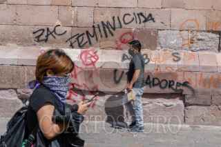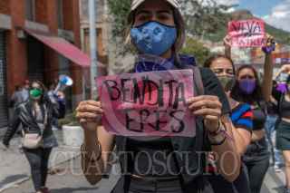 ZACATECAS, ZAC, 16AGOSTO2021 .- Mujeres integrantes de diversos colectivos feministas marcharon por las principales calles de la ciudad para exigir justicia por el feminicidio de Mireya Barbosa Hernández, una joven del municipio de Sombrerete quien fue reportada como desaparecida y su cuerpo fue encontrado el pasado 8 de agosto en lote baldío entre Villas de Guadalupe y Villas Mariana, pertenecientes al municipio de Guadalupe, Zacatecas. FOTO: DIANA VALDEZ /CUARTOSCURO.COM