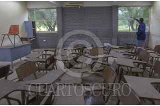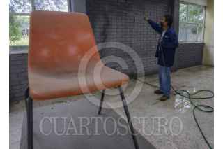GUADALUPE, NUEVO LEÓN, 17AGOSTO2021.- Personal de intendencia y docentes acuden a las escuelas para realizar limpieza en las aulas y revisar el programa educativo ante una posible regreso a clases presencial. FOTO: GABRIELA PÉREZ MONTIEL / CUARTOSCURO.COM