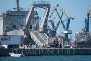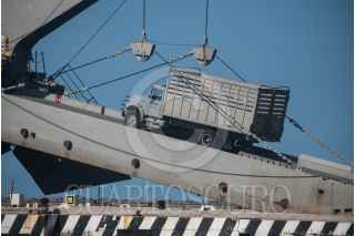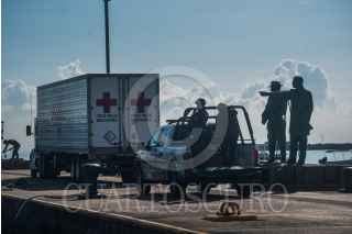 VERACRUZ, VERACRUZ, 17AGOSTO2021.- El buque Papaloapan de la Secretaría de Marina (Semar) es cargado con ayuda humanaría para Haití tras haber enfrentado un sismo de magnitud 7.2 que dejó varias afectaciones en el país. La Cruz Roja junto con empresas privadas enviaron trailers con más de 100 toneladas de insumos para el apoyo de la población damnificada. FOTO: VICTORIA RAZO/CUARTOSCURO.COM