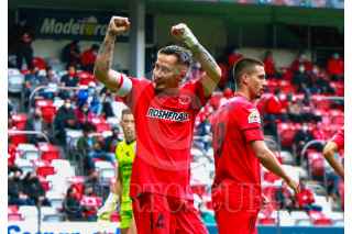 TOLUCA, ESTADO DE MÉXICO, 17AGOSTO2021.- Jugadores de los Diablos Rojos de Toluca festejan las anotaciones realizadas ante la escuadra de Mazatlán FC, partido correspondiente a la jornada 5 del Torneo Grita Mexico A21 en el estadio Nemesio Diez, con un marcador final 2-2. FOTO: ESPECIAL /CUARTOSCURO.COM