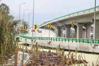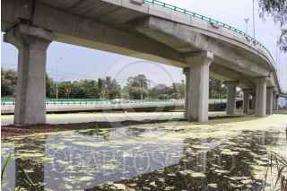 CIUDAD DE MÉXICO, 18AGOSTO2021.- Estructuras que sostienen el Puente Vehicular Periférico-Cuemanco y zonas bajas se mantienen cubiertas por agua, vecinos que transitan por la zona, comentan que temen que el agua afecte la estructura de dicho puente, poniendo en riesgo a los automovilistas. Cabe mencionar que el puente vehicular ya está habilitado en ambos sentidos. FOTO: ROGELIO MORALES /CUARTOSCURO.COM