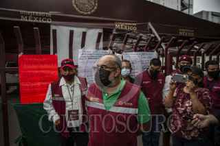TIJUANA, BAJA CALIFORNIA,18AGOSTO2021.- Un grupo de trabajadores de los Servidores de la Nación colocaron candados y tomaron las oficinas ubicadas en Zona Río con la intención de exigir la renuncia del delegado de la dependencia. Durante la protesta denunciaron despidos injustificados y actos de corrupción corrupción. FOTO: OMAR MARTÍNEZ /CUARTOSCURO.COM