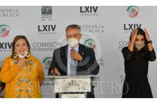 CIUDAD DE MÉXICO, 19AGOSTO2021.- Grupos parlamentarios de Movimiento Ciudadano y Partido Acción Nacional ofrecieron conferencia de prensa para manifestar su postura respecto al dictamen por el que se expide la Ley Federal de Revocación de Mandato, que se discutirá por la tarde durante la sesión extraordinaria de la Comisión Permanente. FOTO: MARIO JASSO/CUARTOSCURO.COM