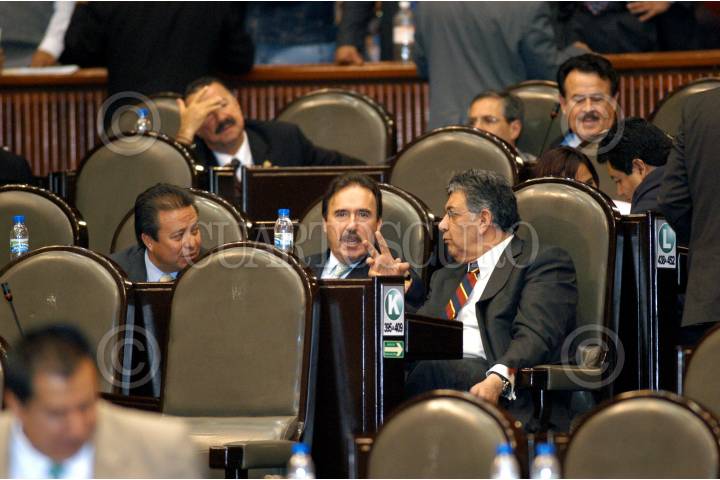 MÉXICO D.F. 26SEPTIEMBRE2006.- Los diputados Andrés Bermúdez Viramontes, del PAN conocido como el "Rey del Tomate" José Murat del PRI durante la sesión ordinaria en Cámara de Diputados. FOTO: GUILLERMO PEREA/CUARTOSCURO.COM
