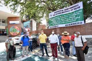 CHILPANCINGO, GUERRERO, 19AGOSTO2021.- Trabajadores de la Secretaría de Salud Guerrero, pertenecientes al Sindicato de Trabajadores del Sistema Nacional de Salud (STSNS) y a la sección 8 del Sindicato Independiente, protestaron afuera de sus oficinas centrales para demandar el pago inmediato del Fondo del Estado de Guerrero de Ahorro Capitalizable (FEGAC) para 8 mil 500 trabajadores. FOTO: DASSAEV TÉLLEZ /CUARTOSCURO.COM
