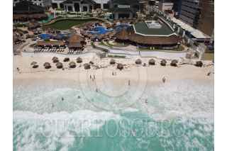 CANCÚN, QUINTANA ROO, 20AGOSTO2021.- Tras el paso del huracán “Grace”, playa Ballenas sufrió de la erosión de su arenal. Y es que el mar, prácticamente “arrasó” con el poco espacio que había en el balneario para reducirlo a poco más de dos metros. Incluso, los hoteles que se ubican en las zonas aledañas tuvieron que retirar sus camastros y sombrillas y pedirle a sus huéspedes utilizar su alberca o bien salir a la playa pero dejar sus cosas dentro del hotel. Prestadores de servicios también quitaron de la playa sus puestos y los acomodaron dentro de la infraestructura pública del balneario. Playa Delfines también resintió el paso de “Grace”, ya que al igual reduce en menor porcentaje si arenal. Pese a ello sigue siendo una de más playas más visitadas por locales, así como turistas nacionales y extranjeros. FOTO: ELIZABETH RUIZ/CUARTOSCURO.COM