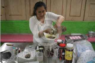 CIUDAD DE MÉXICO, 20AGOSTO2021.- La apicultora Martha Flores y su esposo Juan Rojo llevan 16 años dedicándose a la crianza de las abejas en un apiario en el pueblo de San Andrés Ahuayucán, en la alcaldía Xochimilco. Desde hace cuatro años, Martha elabora diversos productos a base de miel, propóleo o polen, como shampoo, jabones, talco, cremas, cosméticos, dulces y velas. "El propóleo tiene muchas propiedades, sirve como antiséptico, ayuda a mejorar el estreñimiento, regenera los glóbulos rojos, previene la caída de cabello y cicatriza las heridas", comenta la apicultora. Durante el proceso del cuidado de las abejas en el apiario se revisa la población en los bastidores cada quince días para revisar cómo depositan la miel, una vez poblada la caja se revisan las alzas y posteriormente extraen el propóleo y la miel para la elaboración de los productos. Los artículos "Flores de San Andrés" se pueden adquirir a través de whats app al número 5514399957 o por Facebook al usuario Martha Flores. FOTO: GRACIELA LÓPEZ /CUARTOSCURO.COM