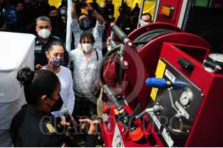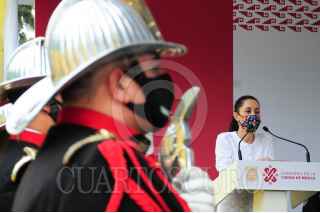 CIUDAD DE MÉXICO, 22AGOSTO2021.- Claudia Sheinbaum, jefa de gobierno de la capital, encabezó la celebración del Día del Bombero en la zona donde se está construyendo las nuevas instalaciones de la estación de bomberos en la Alcaldía Iztacalco. La mandataria capitalina estuvo acompañada por el alcalde de Iztacalco, Armando Quintero y el director general del Heroico Cuerpo De Bomberos, Juan Manuel Pérez Cova. FOTO: DANIEL AUGUSTO /CUARTOSCURO.COM