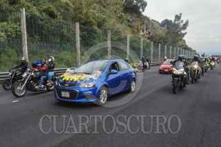 CIUDAD DE MÉXICO, 22AGOSTO2021.- Motociclistas se reunieron en la caseta de Tlalpan para realizar una rodada en homenaje por los "bikers" accidentados el pasado domingo en la autopista México-Cuernavaca. FOTO: CRISTIAN HERNÁNDEZ/CUARTOSCURO.COM