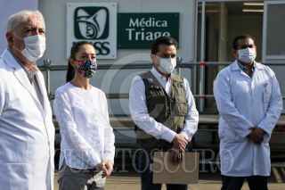 CIUDAD DE MÉXICO, 22AGOSTO2021.- Claudia Sheinbaum, jefa de gobierno de la capital, en compañía de Zoé Robledo, titular del IMSS, realizaron un recorrido por la Unidad Temporal Morelos, donde serán atendidas las personas que sean diagnosticadas con Covid-19. Este nosocomio se encuentra habilitado en las instalaciones del Centro de Actividades Acuáticas de Alto Nivel (CAAN) Morelos, en la Alcaldía Gustavo A. Madero. FOTO: GCDMX /CUARTOSCURO.COM