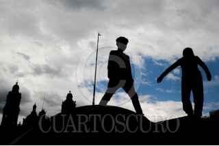 CIUDAD DE MÉXICO, 22AGOSTO2021.- Dos niños juegan sobre las letras de la CDMX ubicadas en la explanada del Zócalo capitalino durante la tarde de este domingo. FOTO: DANIEL AUGUSTO /CUARTOSCURO.COM