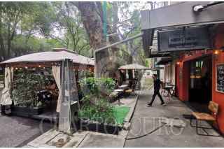 CIUDAD DE MÉXICO, 22AGOSTO2021.- Restaurantes continúan ofreciendo sus servicios en banquetas y sobre el asfalto, esto en acatamiento a las medidas sanitarias de la Secretaría de Salud que han señalado que en espacios abiertos es más difícil la propagación del Covid-19, sin embargo, vecinos de la alcaldía Cuauhtémoc se han quejado de que los restauranteros se han apropiado indebidamente de espacios de transito peatonal, el día de ayer la Jefa de Gobierno, Claudia Sheinbaum, llamo a este sector a respetar las reglas de esta medida, entre las que destacan no colocar estructuras fijas. FOTO: MOISÉS PABLO/CUARTOSCURO.COM