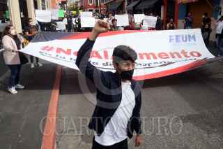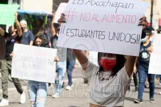 CUERNAVACA, MORELOS, 24AGOSTO2021.- Marcha de la Federación de Estudiantes Universitarios de Morelos para protestar y exigir que no se aumente el pasaje. El incremento de dos pesos fue autorizado por el gobierno del estado y publicado los primeros minutos del viernes pasado en el periódico Oficial “Tierra y Libertad” sin consulta previa con los usuarios del transporte. Los transportistas han dicho que no es un aumento al pasaje sino un ajuste. Los estudiantes y usuarios denuncian que el incremento del 25% a la tarifa se da en plena crisis económica derivada de la pandemia del Covid-19. FOTO: MARGARITO PÉREZ RETANA / CUARTOSCURO.COM