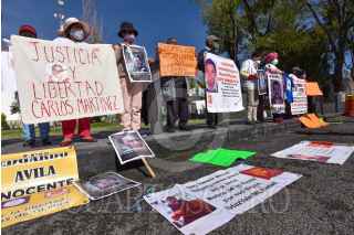 TOLUCA, ESTADO SE MÉXICO, 25AGOSTO2021.- Integrantes de #HazValerMiLibertad quienes mantienen una huelga de hambre en la Plaza de los Mártires exigiendo que sus familiares presos en penales mexiquenses sean beneficiados con la Ley de Amnistía, se manifestaron en las inmediaciones de la Escuela Judicial del Estado de México. FOTO: CRISANTA ESPINOSA AGUILAR /CUARTOSCURO.CO