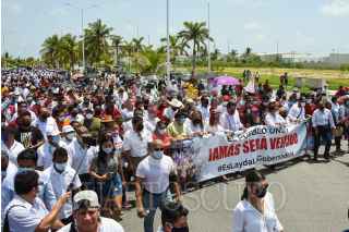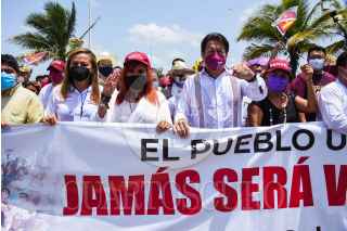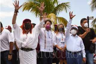 CAMPECHE, CAMPECHE, 25AGOSTO2021.- Layda Sansores San Román virtual ganadora de la gubernatura de Campeche y el líder nacional de Morena Mario Delgado encabezaron una marcha desde el parque de san francisco donde caminaron hasta el Centro de Convenciones Campeche XXI sede donde se lleva a cabo el recuento de votos a la gubernatura del estado, en el lugar hicieron un pequeño mitin donde exigieron que se respete la decisión del pueblo, Layda Sansores manifestó esta es nuestra victoria, y si quieren contar que cuenten, vamos a volver a ganar, por su parte el líder nacional dijo, que defenderán la decisión de los campechanos, y vamos a apoyar a la gobernadora electa de Campeche FOTO: MICHAEL BALAM/CUARTOSCURO.COM