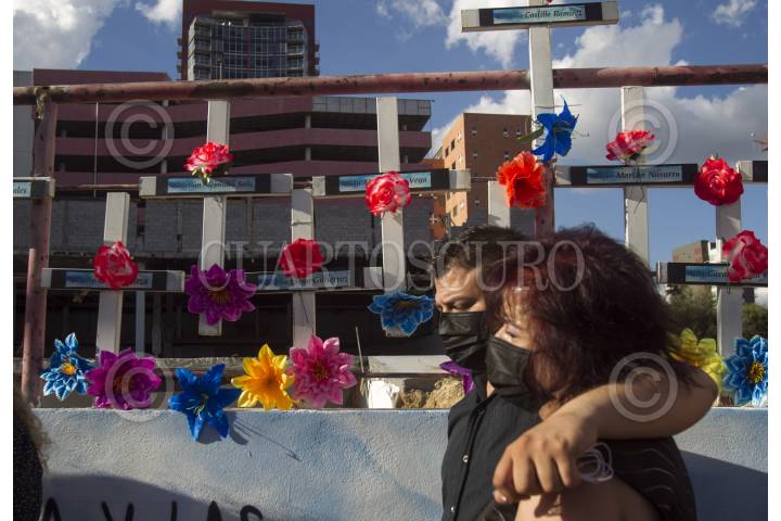 MONTERREY, NUEVO LEÓN, 25AGOSTO2021.- Familiares de víctimas del ataque al Casino Royale, donde murieron 52 personas, se reunieron en conmemoración del décimo aniversario donde colocaron flores y pintaron sus manos en el muro exterior exigiendo justicia para los deudos y sus familias. FOTO: GABRIELA PÉREZ MONTIEL / CUARTOSCURO.COM