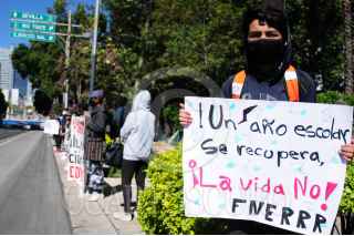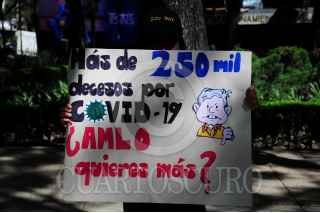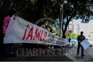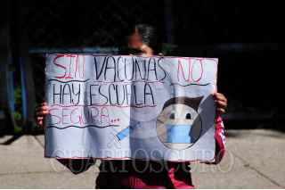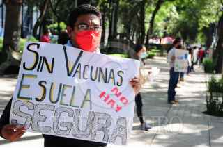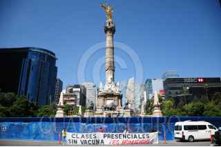 CIUDAD DE MÉXICO, 26AGOSTO2021.- Alumnos afiliados al Frente Nacional de Estudiantes Revolucionarios "Rafael Ramírez" se manifestaron sobre Paseo de la Reforma, mediante una cadena humana, en contra del próximo regreso a clases el 30 de agosto. Los estudiantes afirman que en caso de volver estarían arriesgando sus vida al contraer el virus y exigen al gobierno la aplicación de la vacuna para prevenir esta enfermedad. FOTO: DANIEL AUGUSTO /CUARTOSCURO.COM