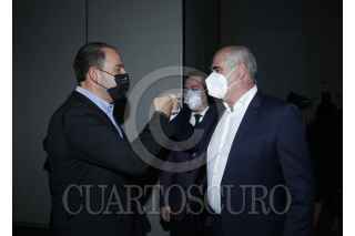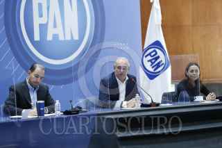 CIUDAD DE MÉXICO, 26AGOSTO2021.- Marko Cortés, líder nacional del PAN, y Julen Rementería, coordinador de los senadores panistas, encabezaron la inauguración de la reunión plenaria de los senadores blanquiazules. FOTO: CUARTOSCURO.COM