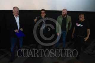 CIUDAD DE MÉXICO, 26AGOSTO2021.- Héctor de Mauleón, periodista cultural, Alex Lora, músico y cantautor, el director Carlos Santos, y Chavorock, periodista musical, encabezaron una conferencia para presentar la película "Chilangoandia", la cual se estrenará el próximo 16 de septiembre en cines comerciales. FOTO: GRACIELA LÓPEZ/CUARTOSCURO.COM