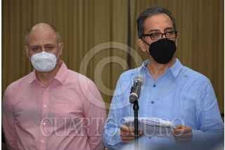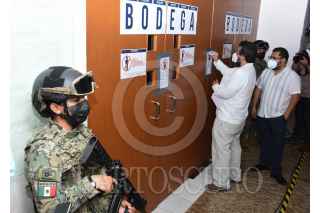 CAMPECHE, CAMPECHE. 27AGOSTO2021.- Los Magistrados Enrique Figueroa Avila sala regional Xalapa y Ruben Jesus Lara patrón de sala especializada fijaron posicionamiento tras 30 horas de conteo de actas para gobernador en Campeche, de manera preliminar ratifican el triunfo de Layda Sansores San Román, mencionaron que se contabilizaron los 1,190 paquetes electorales distribuidas en las 30 mesas dentro del Centro de Convenciones Campeche XXI ,ante los representantes de partidos políticos quienes dieron certeza del recuento, el cual se llevo de manera transparente y sin ninguna anomalía durante el proceso. Los paquetes electorales fueron resguardados de nueva cuenta en la bodega habilitada en el Centro de convenciones Campeche XXI bajo vigilancia permanente ,serán devueltos mañana al Instituto Electoraldel Estado de Campeche ( IEEC). FOTO: MICHAEL BALAM/CUARTOSCURO.COM