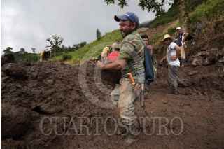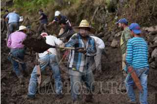 CHICONQUIACO, VERACRUZ. 27AGOSTO2021.- Un centenar de hombres de la localidad El Escalanar, municipio de Chiconquiaco buscan liberar el camino que utilizan para viajar a Xalapa y otros poblados de la zona. Llevan una semana incomunicados y calculan que les tomará un mes remover el lodo y las piedras de esta vía afectada por un deslave durante el paso del huracán “Grace”, de continuar trabajando sin apoyo de los tres órdenes de Gobierno. Decenas de familias perdieron la mayoría de sus pertenencias, muebles y enseres domésticos. FOTO: YERANIA ROLÓN/CUARTOSCIURO.COM