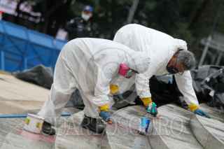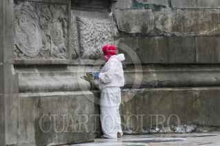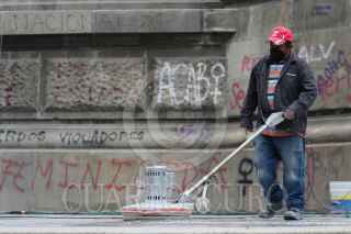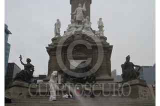 CIUDAD DE MÉXICO, 27AGOSTO2021.- Restauradores continuaron con los últimos de detalles de limpieza del Ángel de la Independencia, después de dos años de se intervenido por colectivas feministas en protesta a los feminicidios que ocurren diariamente en el país. FOTO: GRACIELA LÓPEZ /CUARTOSCURO.COM