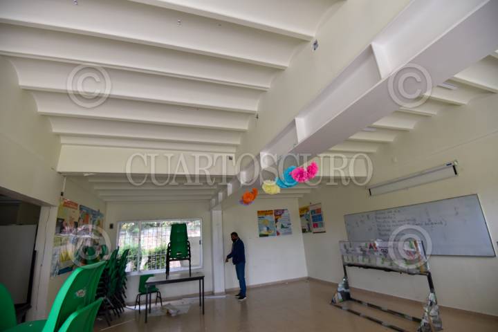 ZINACANTEPEC, ESTADO DE MÉXICO, 27AGOSTO2021.- El próximo 30 de agosto inicia el ciclo escolar 2021-2022 de forma presencial en escuelas de la República Mexicana, pero algunas no están en las mejores concisiones para recibir a los estudiantes, tal es el caso de la Primaria León Felipe en San Luis Mextepec, la cual ha sido robada en 5 ocasiones durante la pandemia por COVID-19, se han robado desde equipo de cómputo, la bomba de agua, cableado, lámparas, tubería de los sanitarios, entre otras cosas, para este lunes no tendrían luz las aulas, agua en los sanitarios, y más carencias para que los maestros y alumnos puedan tomar de manera digna sus clases. FOTO: CRISANTA ESPINOSA AGUILAR /CUARTOSCURO.COM