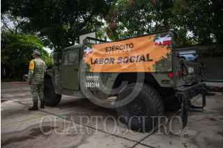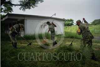 VERACRUZ, VERACRUZ. 27AGOSTO2021.-Soldados mexicanos, acompañados de padres de familia y maestros, realizaron la limpieza de escuelas de educación básica que se encontraban en mal estado. En este sentido la Escuela Articulo Tercero en la Colonia el Vergel fue un plantel en el que se brindó dicho apoyo, esto previo al regreso a clases presenciales después de la cancelación por la actual pandemia de Covid-19. FOTO: VICTORIA RAZO/CUARTOSCURO.COM