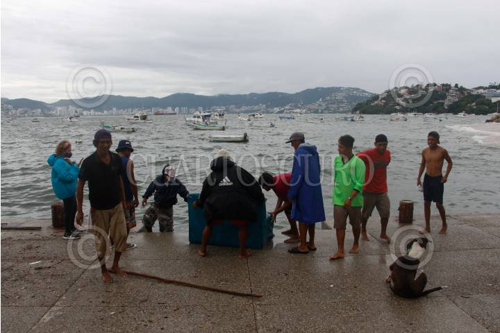 ACAPULCO, GUERRERO, 27AGOSTO2021.- El paso de la tormenta Nora en el Puerto de Acapulco hasta él momento ha dejado la desaparición de tres pescadores qué desde anoche tenían programada su llegada al puerto. Familiares, amigos y elementos de la Marina iniciaron su búsqueda está mañana, por otro lado se tiene el reporte de que un yate su hundió en el era del malecón. FOTO: CARLOS ALBERTO CARBAJAL/ CUARTOSCURO.COM
