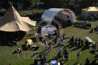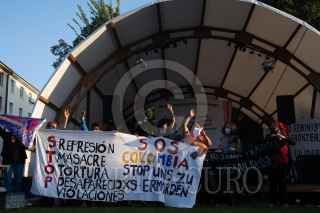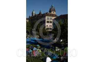 BASILEA, SUIZA, 27AGOSTO2021.- El Escuadrón 421 asistió a la apertura del campamento en torno a la Gira por la Vida en la ciudad que alberga las farmacéuticas más poderosas del mundo. Con la intención de compartir, aprender y escuchar los compañeroas zapatistas compartieron el espacio con cientos de jóvenes militantes de diferentes luchas en sus territorios en tierras europeas. Para abrir este encuentro las colectivas feministas realizaron un juicio patriarcal donde mujeres de la región y migrantes de latinoamérica y Asías denunciaron las violencias ejercidas contra sus cuerpos y territorios, para finalizar al unísono al ritmo de una guitarra se entonaron “Cancion sin miedo” de Vivir Quintana. FOTO: ISABEL MATEOS /CUARTOSCURO.COM