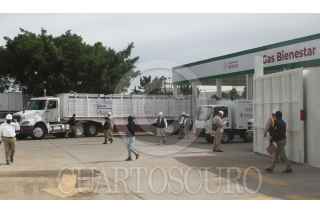CIUDAD DE MÉXICO, 28AGOSTO2021.- A partir de ayer comenzaron las pruebas piloto de venta del "Gas Bienestar" en la Terminal de Almacenamiento y Distribución (TAD) Añil, en la alcaldía Iztacalco. Los camiones estándares cuentan con 70 tanques para su venta en la alcaldía Iztapalapa. FOTO: GRACIELA LÓPEZ /CUARTOSCURO.COM