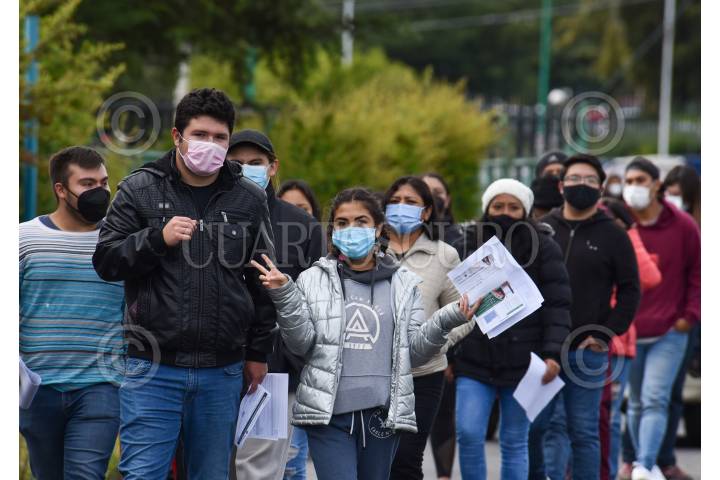 TOLUCA, ESTADO DE MÉXICO, 28AGOSTO2021.- Jóvenes de 18 a 29 años de edad acudieron a temprana hora a los centros de vacunación instalados en 4 puntos en la ciudad de Toluca para recibir la primera dosis de la vacuna contra COVID-19 de Moderna; no importaron la condiciones climáticas, se observaron largas filas. FOTO: CRISANTA ESPINOSA AGUILAR /CUARTOSCURO.COM