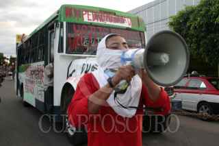 OAXACA OAXACA, 01OCTUBRE2006.- Se presume que un estudiante de la Universidad Autonoma Benito Juárez de Oaxaca fue secuestrado por agentes de la judicial, por lo que presuntos compañeros suyos secuestraron unos camiones como forma de protesta y exigir se ha regresado sano y salvo. FOTO: MOISÉS PABLO/CAURTOSCURO.COM