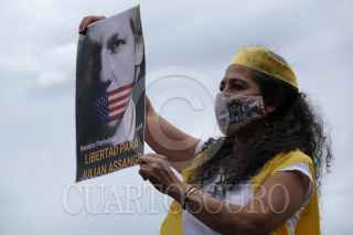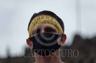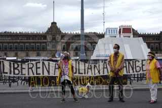 CIUDAD DE MÉXICO, 28AGOSTO2021.- Activistas en pro de la liberación de Julian Assange, creador de Wikileaks, se manifestaron en el Zócalo capitalino para volantear y concientizar a la población sobre el caso del periodista. FOTO: GALO CAÑAS/CUARTOSCURO.COM