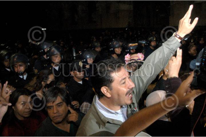 MÉXICO D.F.01 OCTUBRE2006.- Simpatizantes del excandidato de la coalición Por el Bien de Todos se manifestaron a las afueras del edificio de Correos ya que cerca de ahi asistia el presidente electo a un evento de la SIP. FOTO: GUILLERMO PEREA/CUARTOSCURO.COM