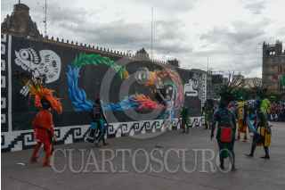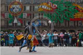 CIUDAD DE MÉXICO, 28AGOSTO2021.- Juego de pelota prehispánico en la explanada del zócalo capitalino como parte de las actividades conmemorativas de los 500 Años de Resistencia Indígena. FOTO: MARIO JASSO/CUARTOSCURO.COM