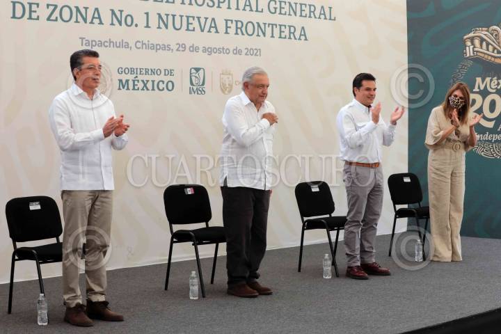 TAPACHULA, CHIAPAS, 29CHIAPAS2021.- Andrés Manuel López Obrador, Presidente de México, presidió la Inauguración del Hospital General de Zona No. 1 "Nueva Frontera". Lo acompañaron Rutilio Escandón Cadenas, gobernador del estado de Chiapas; Zoé Robledo Aburto, Director General del Instituto Mexicano del Seguro Social y Rosa Irene Urbina Castañeda, Presidenta Municipal de Tapachula. FOTO: PRESIDENCIA/CUARTOSCURO.COM