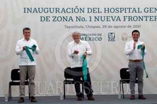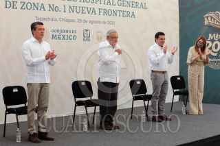 TAPACHULA, CHIAPAS, 29CHIAPAS2021.- Andrés Manuel López Obrador, Presidente de México, presidió la Inauguración del Hospital General de Zona No. 1 "Nueva Frontera". Lo acompañaron Rutilio Escandón Cadenas, gobernador del estado de Chiapas; Zoé Robledo Aburto, Director General del Instituto Mexicano del Seguro Social y Rosa Irene Urbina Castañeda, Presidenta Municipal de Tapachula. FOTO: PRESIDENCIA/CUARTOSCURO.COM
