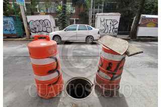 CIUDAD DE MÉXICO, 29AGOSTO2021.- Cada vez es más recurrente el robo de tapas de drenaje que están hechas de hierro fundido, las cuales venden en el mercado negro. Su reposición puede tardar semanas lo que representa peligro para los coches, ciclistas y peatones. FOTO: MOISÉS PABLO/CUARTOSCURO.COM