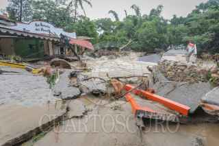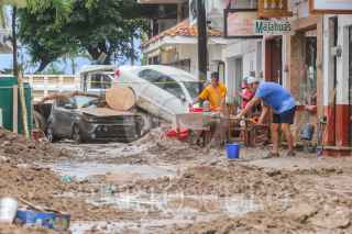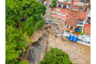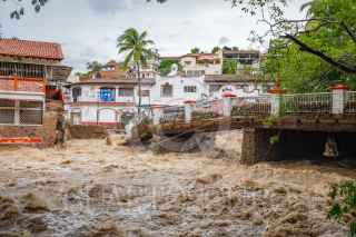PUERTO VALLARTAS, JALISCO, 29AGOSTO2021.- Intensas lluvias se registraron por el paso de la tormenta tropical "Nora" lo que provocó el desbordamiento del Río Cuales, un ciudadano español murió cuando el hotel donde se hospedaba se derrumbo parcialmente. FOTO: AGENCIA PERSPECTIVA/CUARTOSCURO.COM