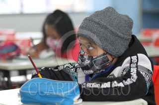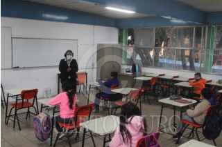 CIUDAD DE MÉXICO, 30AGOSTO.- Alumnos inscritos en la Escuela Primaria "Carlos Pellicer", incorporada a la SEP, regresaron a clases presenciales con las medidas sanitarias evitar contagios de Covid-19. Durante las clases los niños permanecen con cubrebocas o careta y las sana distancia entre compañeros. FOTO: GRACIELA LÓPEZ /CUARTOSCURO.COM