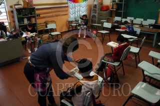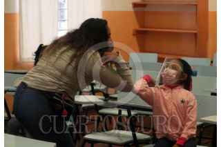 CUERNAVACA, MORELOS, 30AGOSTO2021.- Pocos estudiantes acudieron a las clases presenciales para el ciclo 2021-2022. En la escuela primaria profesor ‘Braulio Rodríguez’, ubicada en el centro de la ciudad, de 189 alumnos inscritos sólo asistieron 47. Sin embargo, los pocos estudiantes que regresaron a las aulas lo hicieron con todas las medidas de sanidad para evitar contagios de Covid-19. FOTO: MARGARITO PÉREZ RETANA / CUARTOSCURO.COM