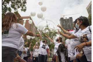 MONTERREY, NUEVO LEÓN, 30AGOSTO2021.- Organizaciones de familiares de desaparecidos en el estado, se dieron cita en la Plaza de los Desaparecidos para conmemorar el Día Internacional de las Víctimas de Desapariciones Forzadas. Colectivos como "Todos somos uno buscando desaparecidos en Nuevo Laredo Tamaulipas" y "Eslabones Nuevo León", oraron por sus seres queridos y soltaron globos blancos. FOTO: GABRIELA PÉREZ MONTIEL/CUARTOSCURO.COM
