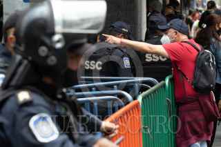 CIUDAD DE MÉXICO, 26AGOSTO2021.- Un intenso operativo de la Secretaría de Seguridad Ciudadana para restringir la movilidad en las calles que rodean al zócalo ha causado molestia en los transeúntes, ya que no tienen que rodear varias cuadras para poder llega a sus destinos. La dependencia y el gobierno capitalino no aclarado el motivo de este despliegue policíaco. FOTO: MOISÉS PABLO/ CUARTOSCURO.COM
