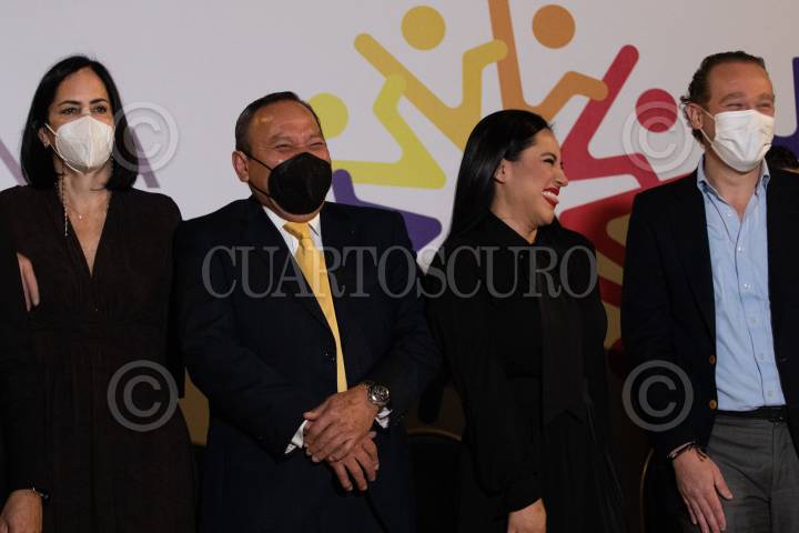 CIUDAD DE MÉXICO, 31AGOSTO2021.- Los integrantes de la Unión de Alcaldías de la Ciudad de México que esta conformada por los alcaldes electos de oposición ofrecieron una conferencia de prensa, en la cual se abordó el tema del zafarrancho que sostuvieron con granaderos en las inmediaciones del Congreso de la Ciudad de México, el día de ayer. Estuvieron presentes Lía Limón, Sandra Cuevas, Jesús Zambrano, Marko Cortés, Mauricio Tabe, Santiago Taboada, Giovanni Gutiérrez, entre otros. FOTO: MOISÉS PABLO/CUARTOSCURO.COM