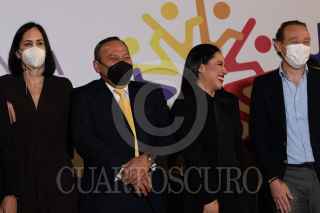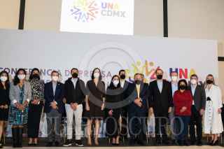 CIUDAD DE MÉXICO, 31AGOSTO2021.- Los integrantes de la Unión de Alcaldías de la Ciudad de México que esta conformada por los alcaldes electos de oposición ofrecieron una conferencia de prensa, en la cual se abordó el tema del zafarrancho que sostuvieron con granaderos en las inmediaciones del Congreso de la Ciudad de México, el día de ayer. Estuvieron presentes Lía Limón, Sandra Cuevas, Jesús Zambrano, Marko Cortés, Mauricio Tabe, Santiago Taboada, Giovanni Gutiérrez, entre otros. FOTO: MOISÉS PABLO/CUARTOSCURO.COM