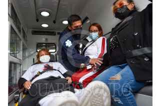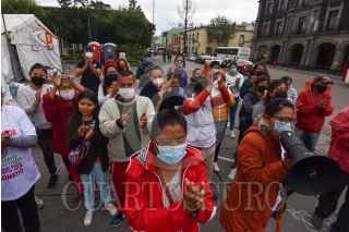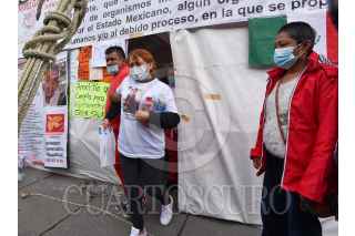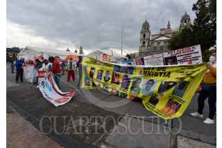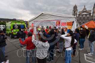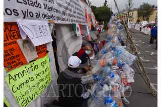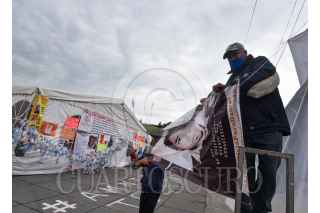 TOLUCA, ESTADO DE MÉXICO, 31AGOSTO2021.- A 19 días de huelga de hambre por parte de familiares de personas privadas de su libertad en penales mexiquenses, tres de los once huelguistas fueron trasladadas en una ambulancia del SUEM al tener complicaciones graves en su salud por el ayuno que mantenían exigiendo la libertad de sus presos, y así no comprometer más sus salud; recogieron algunas lonas en donde se observaban las fotos y nombres de sus presos y se prevé que sea levantada esta huelga instalada en la Plaza de los Mártires. FOTO: CRISANTA ESPINOSA AGUILAR /CUARTOSCURO.COM