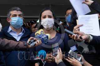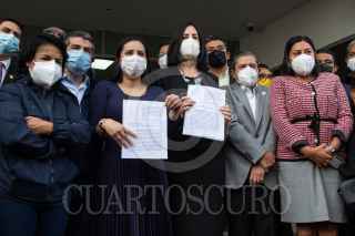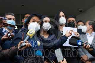 CIUDAD DE MÉXICO, 01SEPTIEMBRE2021.- Los alcaldes electos Lía Limón, Álvaro Obregón; Mauricio Tabe, Miguel Hidalgo; Sandra Cuevas, Cuauhtémoc; Alfa González, Tlalpan, y Margarita Saldaña, Azcapotzalco, acudieron a la Fiscalía General de Justicia de la Ciudad de México para presentar una denuncia por las agresiones que sufrieron por parte de policías durante una manifestación el lunes pasado e las inmediaciones del Congreso de la Ciudad de México, la querella es contra quien resulte responsable, perp señalaron que la orden la dio Martí Batres, secretario de Gobierno. FOTO: MOISÉS PABLO/CUARTOSCURO.COM